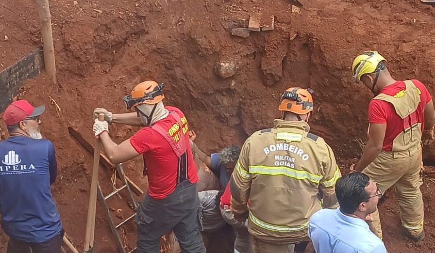 Quatro trabalhadores ficaram parcialmente soterrados depois de um deslocamento de terra na área de escavação durante obras no terminal de ônibus de Senador Canedo, na Região Metropolitana de Goiânia, nesta sexta-feira (20). De acordo com o Corpo de Bombeiros, os trabalhadores ficaram cobertos até a altura do joelho, foram resgatados e levados para o hospital sem ferimentos graves.